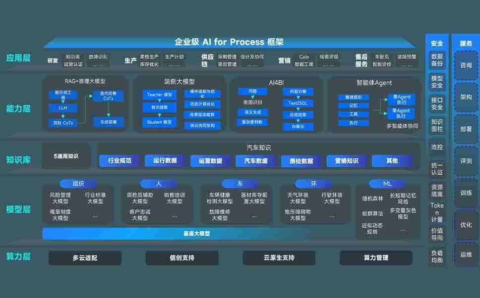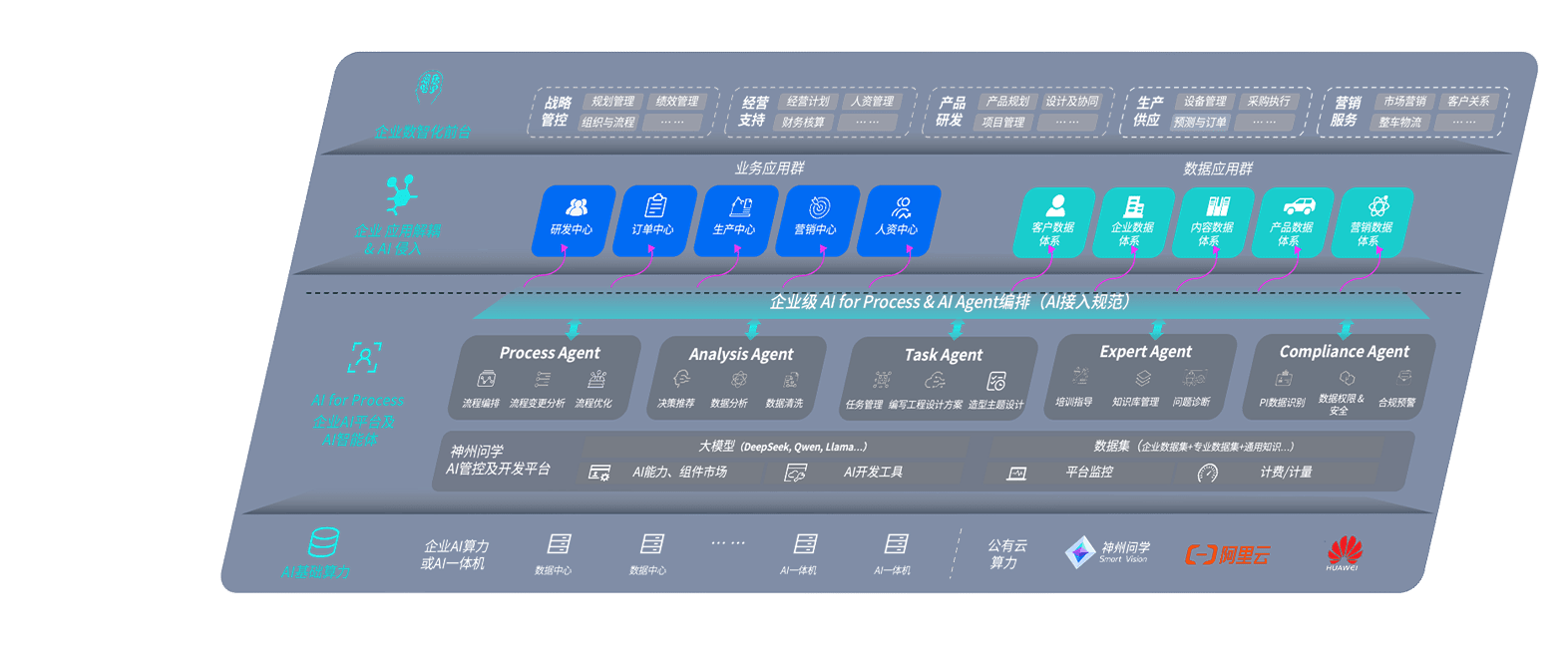 z6尊龙问学智车解决方案是一套基于AI技术的汽车行业智能化系统,,,覆盖从底层算力到顶层AI应用的全栈方案。。。方案由算力层、、、、模型层和应用层组成:算力层,,,,方案支持多种一体机配置,,具备云端灵活部署、、多云适配以及动态优化计算资源的能力;模型层,,,z6尊龙问学平台版提供了企业级AI应用一站式构建与管理平台,,支持基于后训练强化技术的汽车企业专属模型的训练、、评测和运营;应用层,,z6尊龙问学DeepSeek版提供包括超级员工、、、智能招采、、、、智能营销、、、、智能客服、、AI for BI等一系列解决方案,,,可助力汽车行业实现数字化转型,,,,让管理更智能、、、响应更敏捷。。